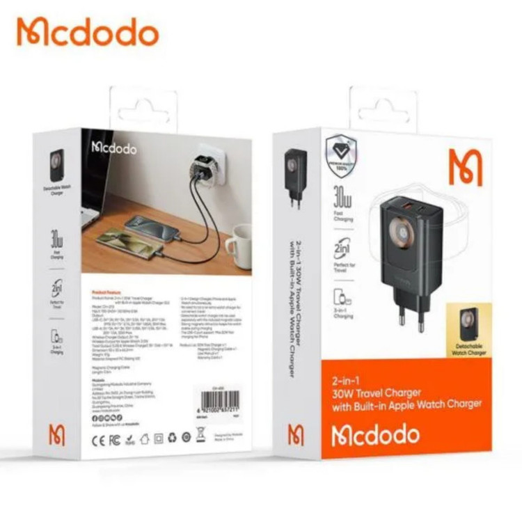 شارژر مک دودو CH-370، دارای قابلیت شارژ وایرلس است.یک پد شارژ وایرلس بر روی بدنه این شارژر قرار گرفته که به کمک آن میتوانید اپل واچ خود را با توان ۲.۵ وات و ایرپاد خود را با توان ۵ وات شارژ کنید.